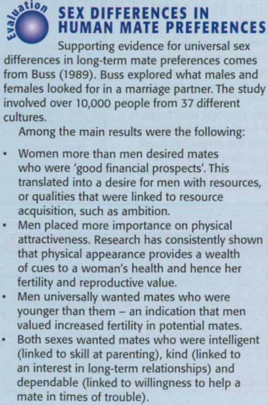 So, in a nutshell this subtopic is all about using the evolutionary approach to explain what people are attracted to, how they go about finding the best person and their perspectives on sexual relationships.